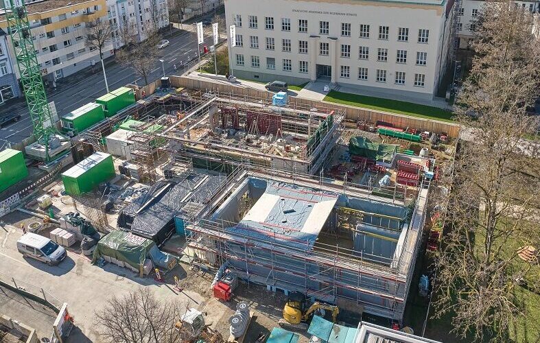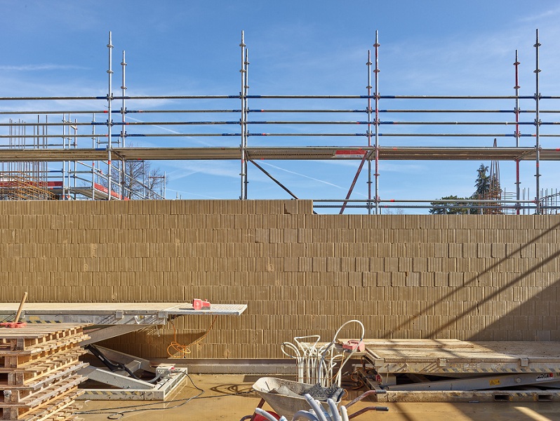 Am Stuttgarter Killesberg schreitet der Bau des Weissenhof.Forums voran. Derzeit entstehen die ersten tragenden Wände aus ungebrannten Lehmsteinen und machen das nachhaltige Konzept sichtbar. Die in Marklkofen produzierten Lehmziegel sind Teil einer innovativen Hybridbauweise aus naturbasierten Materialien, die den Ansatz des „einfachen Bauens“ verfolgt. Das Projekt zählt schon jetzt zu den größten Gebäuden der Gegenwart aus tragenden und aussteifenden Lehmsteinen.